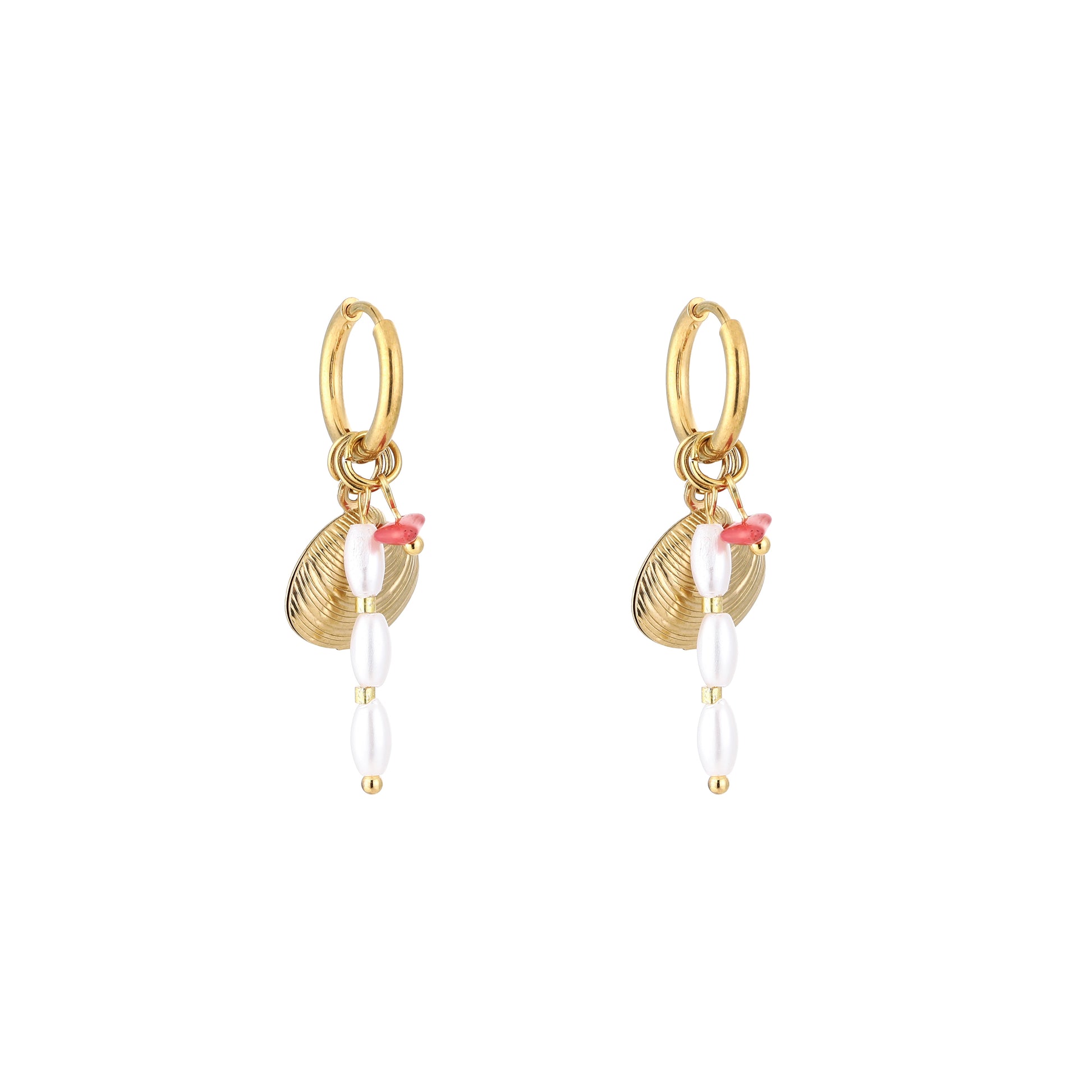 Schelp oorbellen - Rood