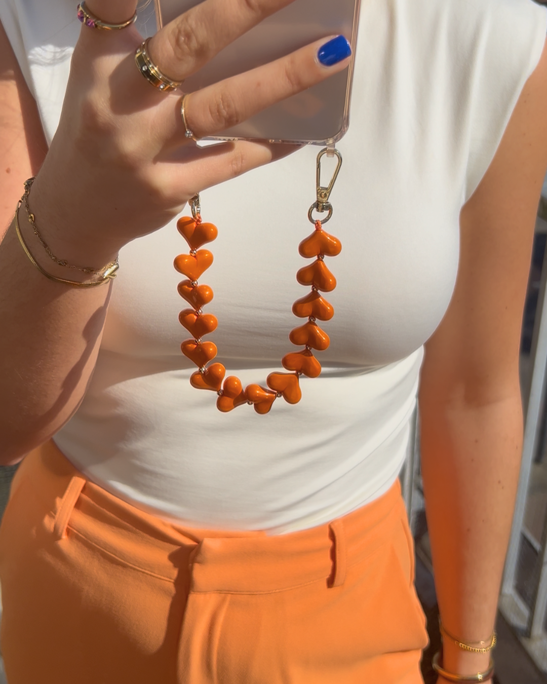 Dit oranje telefoonkoord met hartjes is dé finishing touch voor je outfit!🧡 Perfect te combineren met elke stijl en exclusief verkrijgbaar in beperkte oplage. Scoor hem nu voordat hij weg is! 🧡✨